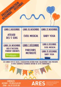 Quand : les lundis 17 novembre et lundi 8 décembre de 9h30 à 11h